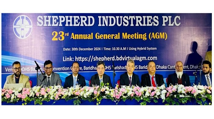 পুঁজিবাজার প্রতিবেদক: শেফার্ড ইন্ডাস্ট্রিজ পিএলসি এর ২৩তম বার্ষিক সাধারণ সভা (এজিএম) আজ, ৩০শে ডিসেম্বর ২০২৪ইং তারিখে সকাল ১০.৩০ ঘটিকায় হাইব্রিড সিস্টেমের মাধ্যমে অনুষ্ঠিত হয়। কোম্পানির পরিচালনা পর্ষদের মাননীয় চেয়ারম্যান মিঃ চাং ওয়েন কুই উক্ত সভার সভাপতিত্ব করেন। সভায় ব্যবস্থাপনা পরিচালক জনাব কাও ওয়েন ফু, মনোনীত পরিচালক মিঃ কাও চেন সাই এবং মনোনীত পরিচালক মিঃ ইয়াং মিং তে, স্বতন্ত্র পরিচালক জনাব মোঃ দেলোয়ার হোসেন, কোম্পানির নির্বাহী পরিচালক ও সিএফও জনাব মোঃ আতাউর রহমান, কোম্পানির উপ-ব্যবস্থাপনা পরিচালক মোঃ আব্দুল মান্নান, কোম্পানির অভ্যন্তরীণ নিরীক্ষা প্রধান মোঃ গোলাম মাইনুদ্দিন এবং কোম্পানি সচিব জনাব মুহাম্মদ মারুফ বিন ওয়ালী হাইব্রিড সিস্টেমের মাধ্যমে অনুষ্ঠিত বার্ষিক সাধারণ সভায় উপস্থিত ছিলেন। হাইব্রিড সিস্টেমের মাধ্যমে অনুষ্ঠিত বার্ষিক সাধারণ সভায় বিপুল সংখ্যক শেয়ারহোল্ডার যোগদান করেন এবং ৩০শে জুন ২০২৪ইং তারিখে সমাপ্ত অর্থ বছরের জন্য নিরীক্ষিত আর্থিক বিবৃতি, পরিচালকদের প্রতিবেদন এবং তার উপর নিরীক্ষকের প্রতিবেদন অনুমোদন করেন এবং স্পন্সর এবং পরিচালক ছাড়া সাধারণ পাবলিক শেয়ারহোল্ডারদের জন্য ১% নগদ লভ্যাংশও অনুমোদন করেন।