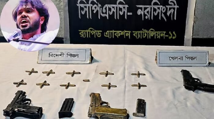 ইনকিলাব মঞ্চের মুখপাত্র ওসমান হাদিকে গুলির ঘটনায় ব্যবহৃত অস্ত্র ও গোলাবারুদ নরসিংদী থেকে উদ্ধার করা হয়েছে বলে জানিয়েছে র্যাপিড অ্যাকশন ব্যাটালিয়ন-১১ (র্যাব)।