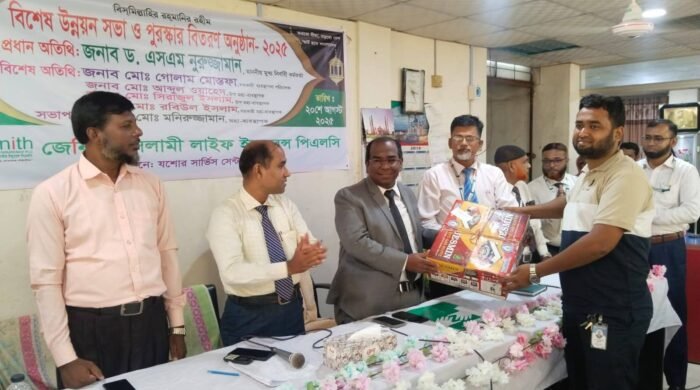 নিজস্ব প্রতিবেদক: আজ ২০ আগস্ট ২০২৫ বুধবার জেনিথ ইসলামী লাইফ ইন্স্যুরেন্স পিএলসির যশোর সার্ভিস সেন্টারে বিশেষ উন্নয়ন সভা ও পুরস্কার বিতরণ অনুষ্ঠিত হয়েছে।